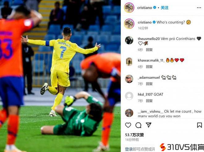 纪录跟随我!C罗晒庆贺亚冠首球照片:谁在数我的进球数?