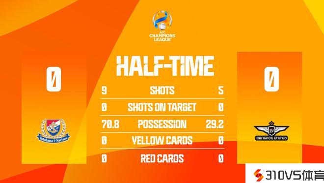 半场-横滨水手0-0曼谷联双方0射正,胜者将在1/4决赛对阵泰山