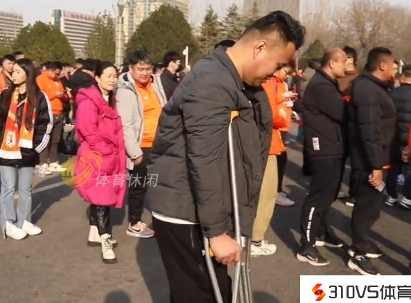为了热爱!聊城球迷拖着伤腿到现场为泰山队助威