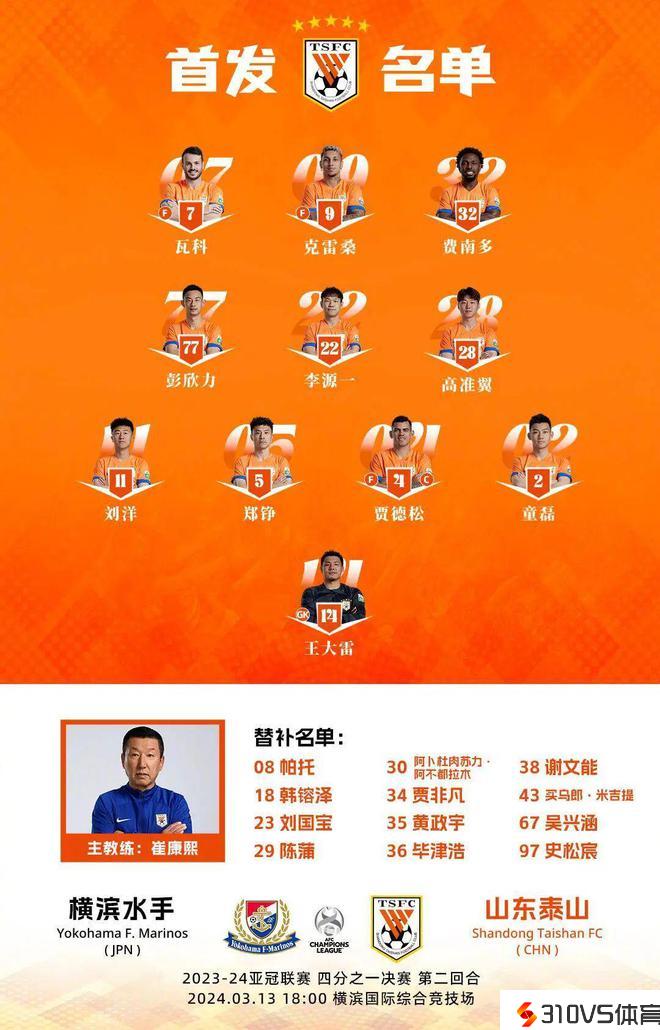 本赛季亚冠小组赛中,山东泰山就曾两次输给横滨水手。为备战本场竞赛,山东泰山在中超第二轮主场同北京国安的竞赛中对整个首发阵容停止了轮换,以确保主力球员有充足的时间备战。 同时,山东泰山 在赛前 发扬“迷魂阵”,仅派遣5名年轻球员前往场地停止顺应,而将剩余球员留在酒店停止身体训练,这让对手“摸不到头脑”,也不清楚中锋克雷桑究竟能否出战。