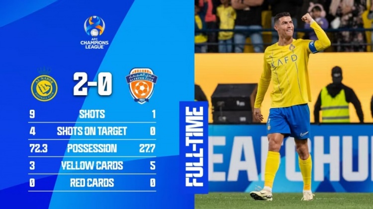 亚冠-利雅得胜利2-0费哈总比分3-0进8强 C罗破门+染黄马宁出示9黄