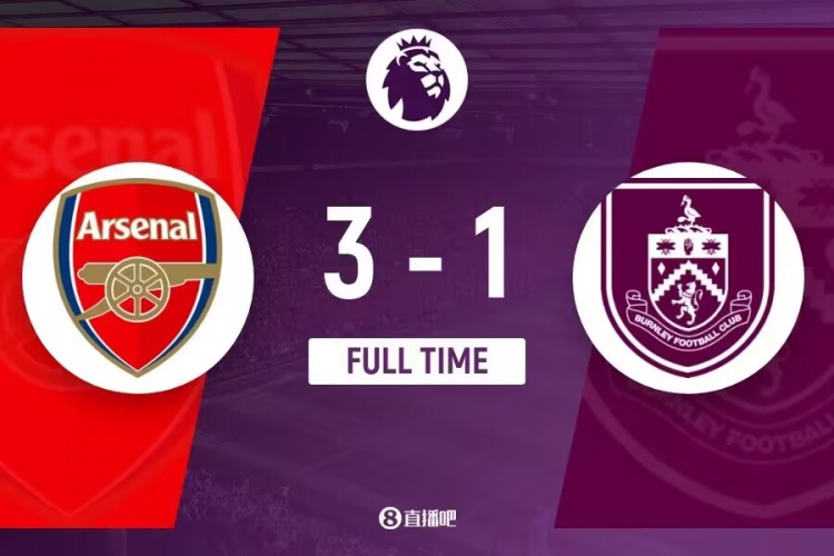 全场比赛结束,阿森纳3-1击败伯恩利。