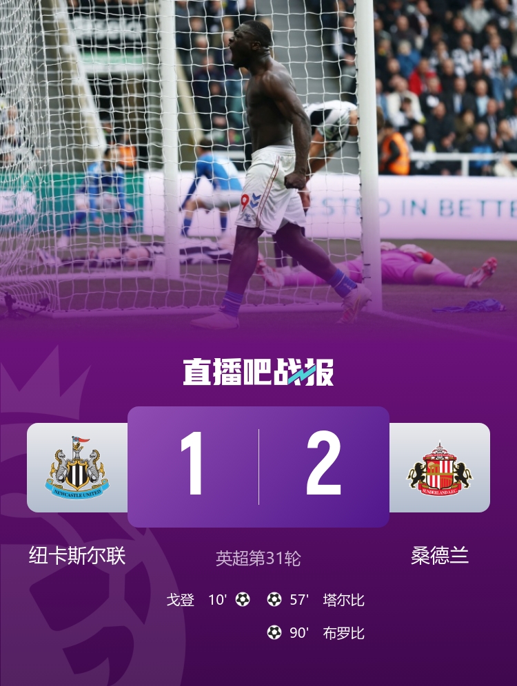 双杀死敌!桑德兰客场2-1绝杀纽卡积分反超 布罗比90分钟破门脱衣