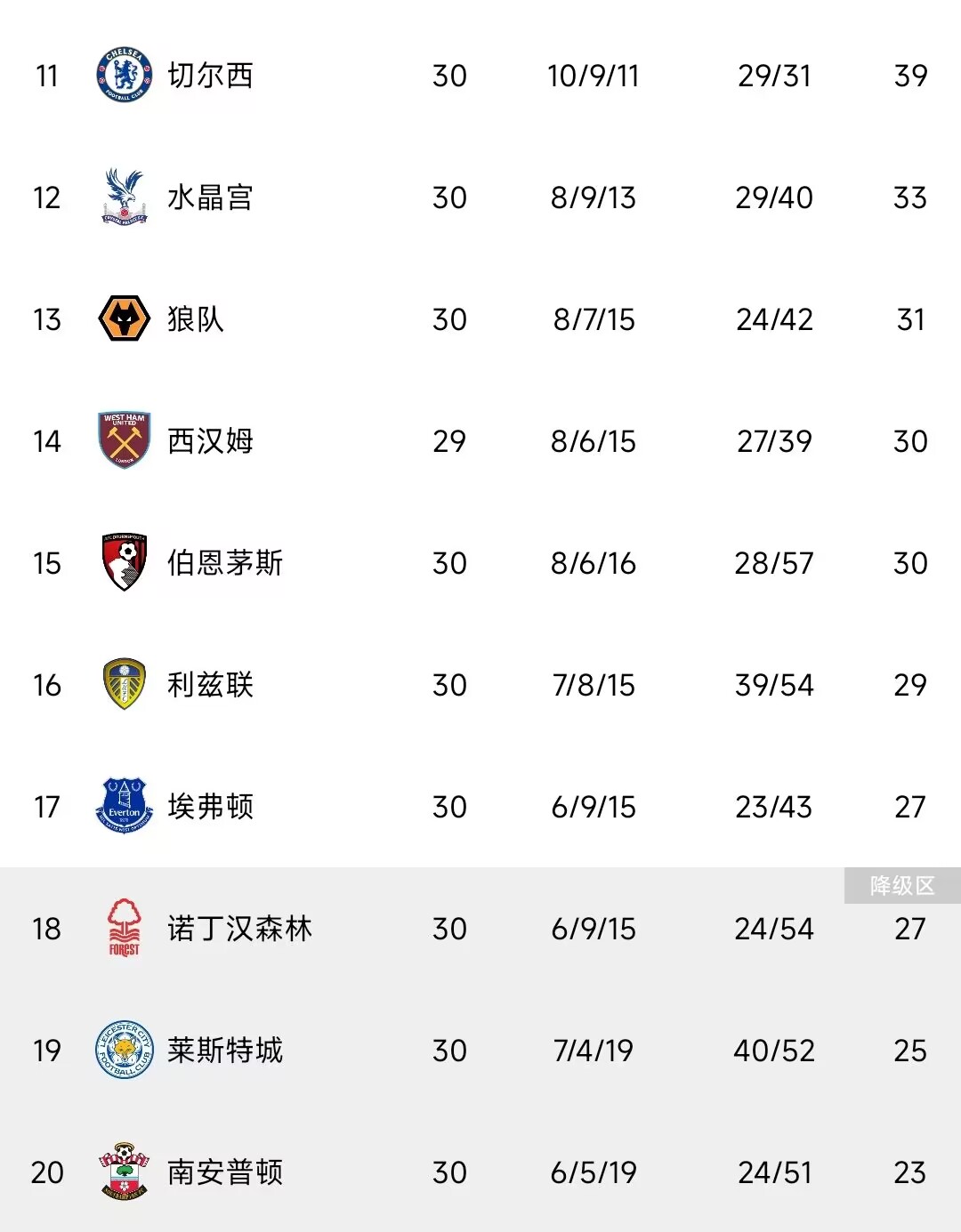 收获两连胜之后,水晶宫积分来到了33分,位列下半区第二,仅落后身前排名11的切尔西6分,同时领先降级区6分。