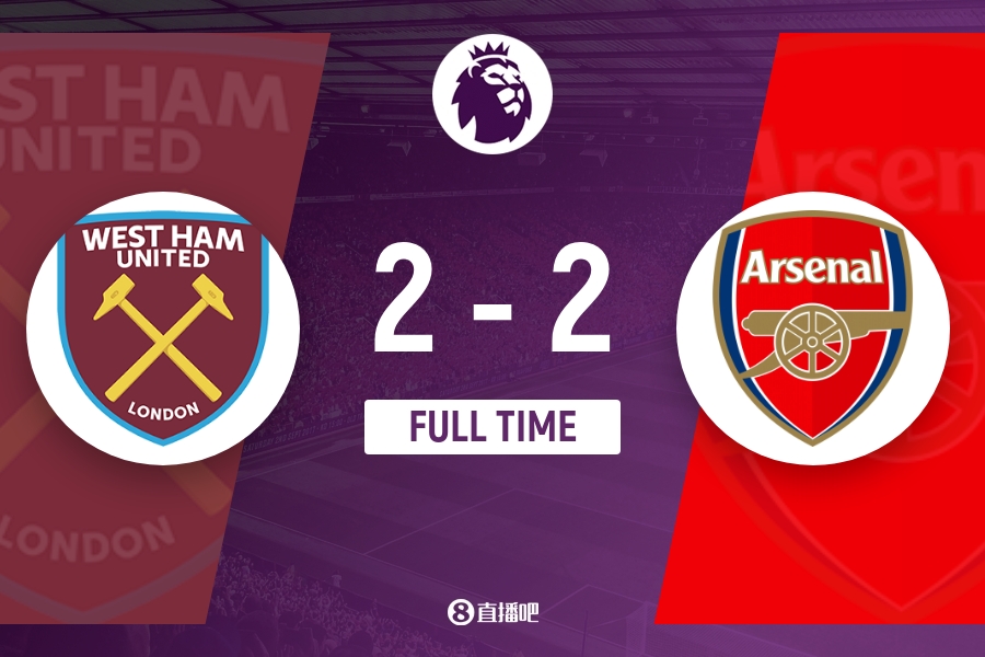 伤停补时5分钟。下半场比赛结束,阿森纳2-2西汉姆。