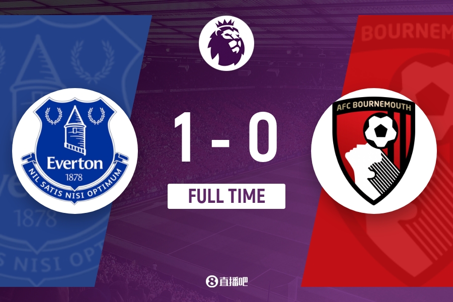 最终,埃弗顿1-0伯恩茅斯。