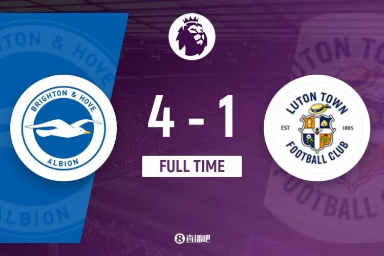 下半场补时7分钟,布莱顿4-1卢顿。