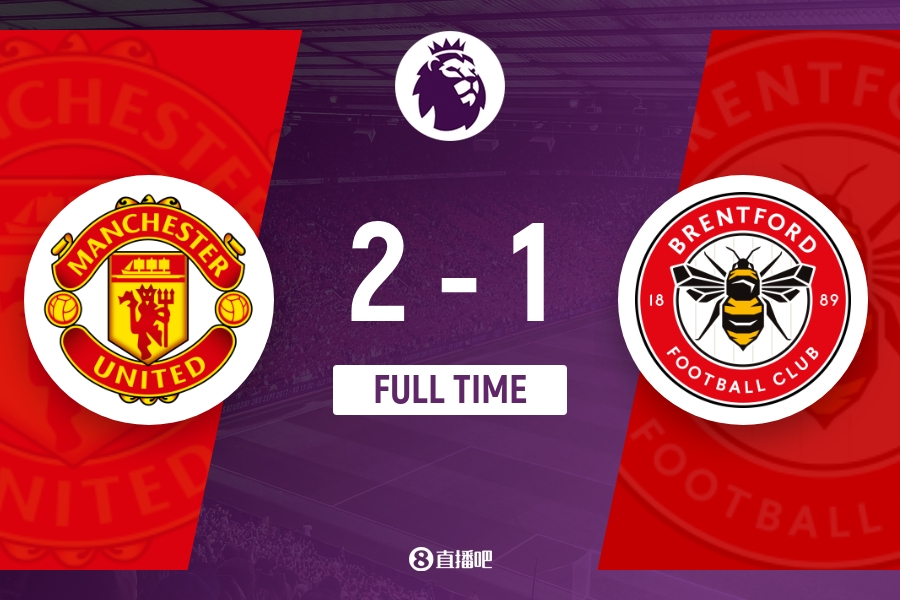 下半场伤停补时6分钟,全场比赛结束,最终曼联2-1布伦特福德。