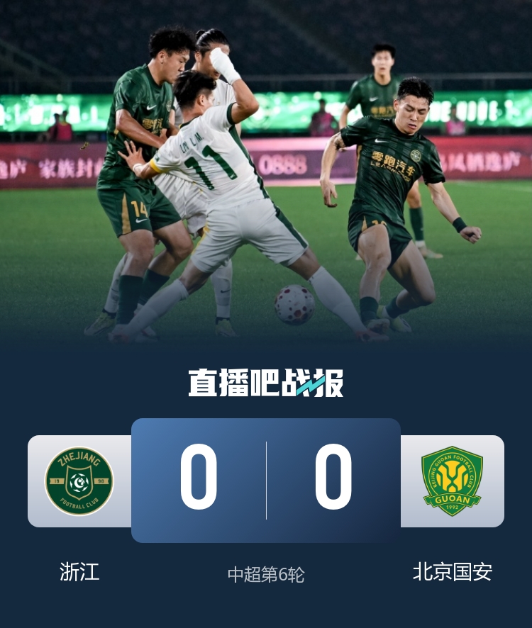 浙江0-0闷平国安 国安6轮仅1胜积分归0 浙江遭遇3轮不胜