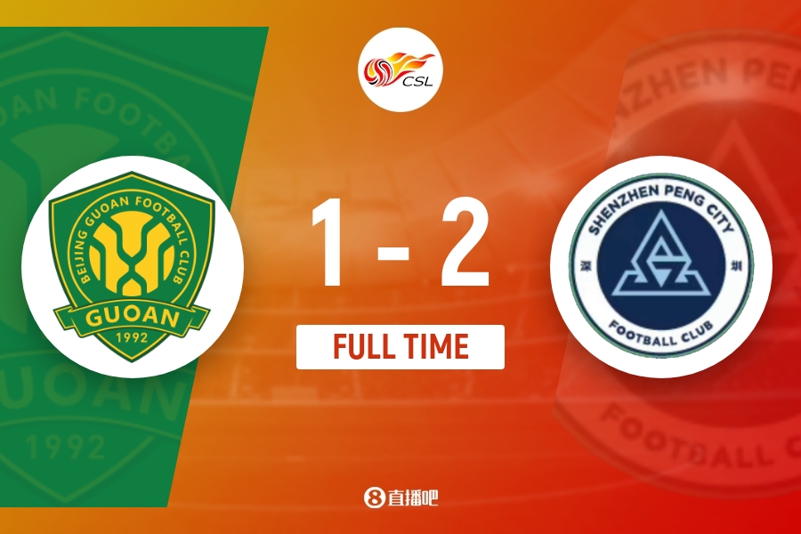 全场比赛结束,北京国安1-2深圳新鹏城。