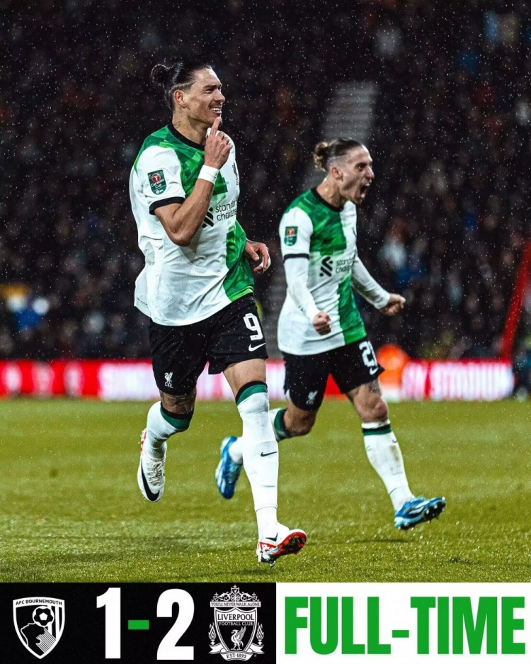 联赛杯-努涅斯世界波制胜加克波建功 利物浦2-1伯恩茅斯晋级八强