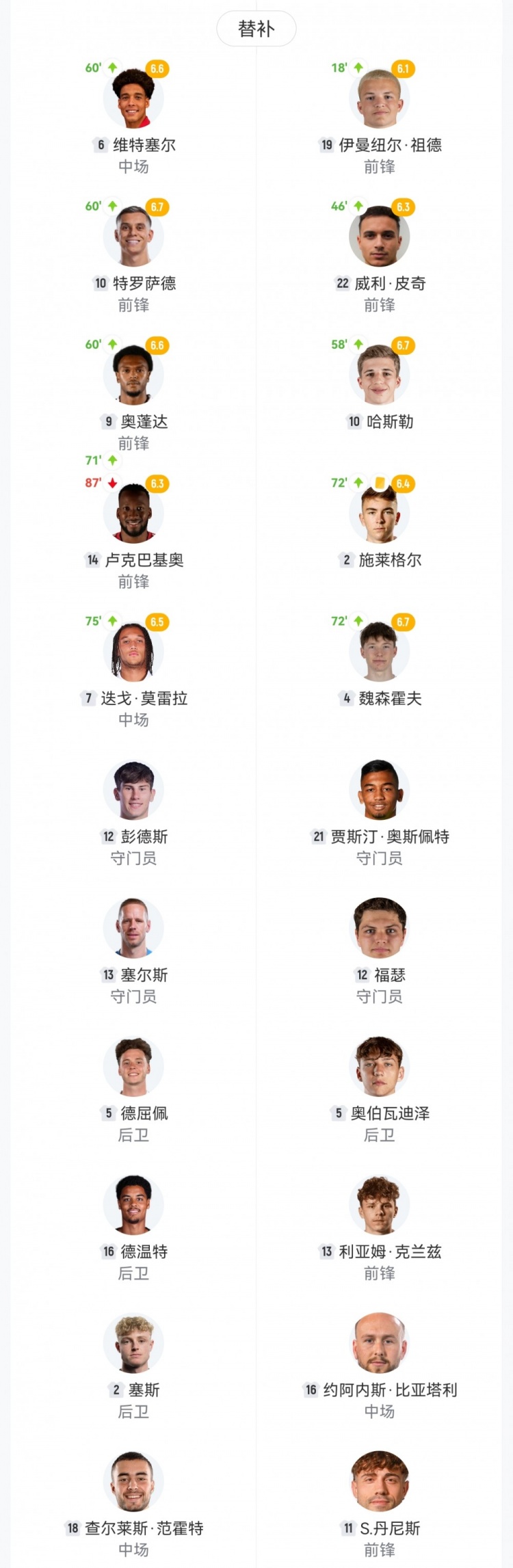 【双方首发及换人信息】