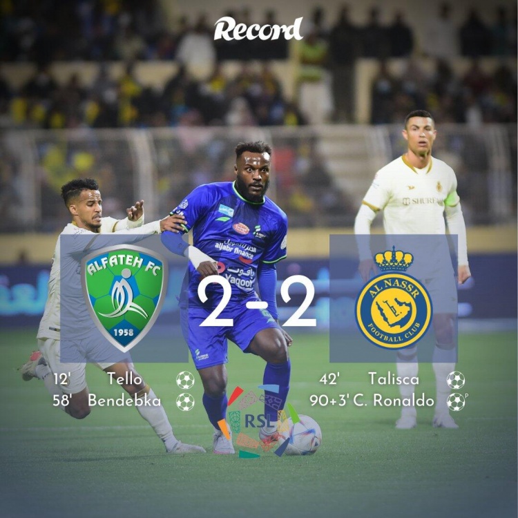 2月4日讯 北京时间2月3日23点,沙特超级联赛利雅得胜利对阵哈萨征服。上半场,特略世界波破门,C罗打进一球但越位在先进球无效,随后他错失绝佳补射机会,塔利斯卡低射扳平比分,C罗补时阶段射中横梁。下半场,本迪卡端射破门,补时阶段马沙里波夫造点,C罗点射绝平,塔利斯卡直红被罚下。全场比赛结束,利雅得胜利2-2哈萨征服。