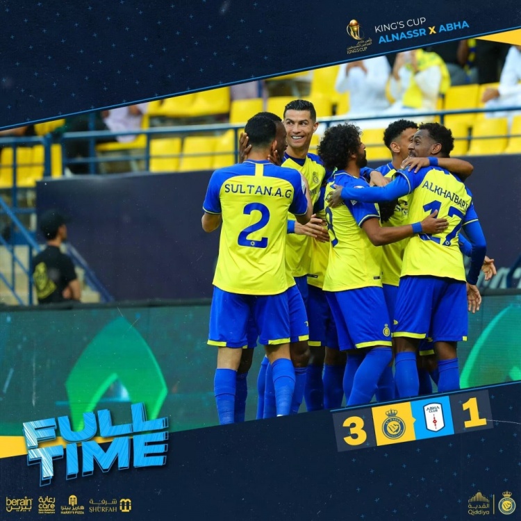 全场比赛结束,利雅得胜利3-1击败艾卜哈。