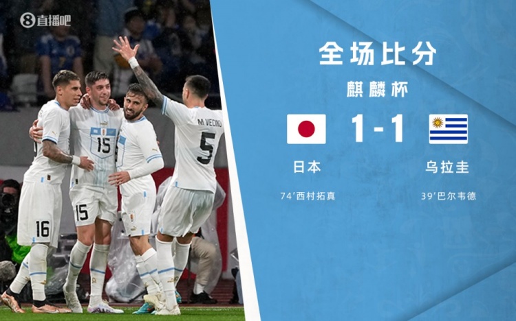 直播3月24日讯 北京时间3月24日晚上18:30,日本对阵乌拉圭。上半场,三笘薰一条龙造威胁,巴尔韦德中框后补射破门。下半场,伊东纯也助攻,西村拓真刚刚替补登场就完成进球。全场结束,日本1-1乌拉圭。