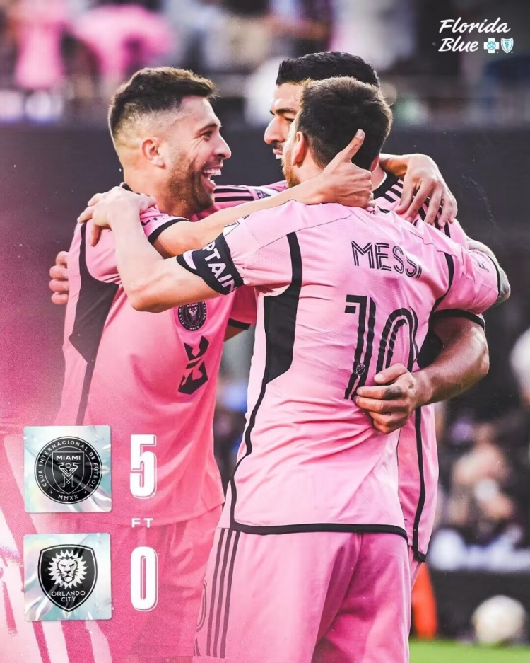 最终,迈阿密国际5-0奥兰多城。