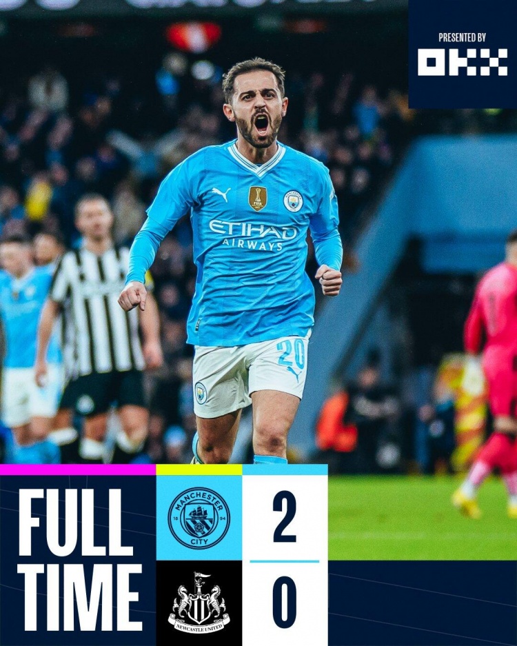 3月17日讯 足总杯1/4决赛,曼城主场迎战纽卡斯尔。上半场,B席双响建功,罗德里、迪亚斯送出助攻,多库失单刀。易边再战,双方互有攻防但均破门乏术。最终曼城2-0纽卡晋级半决赛。