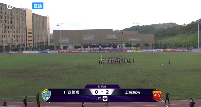 全场比赛结束,上海海港2-0广西恒宸。