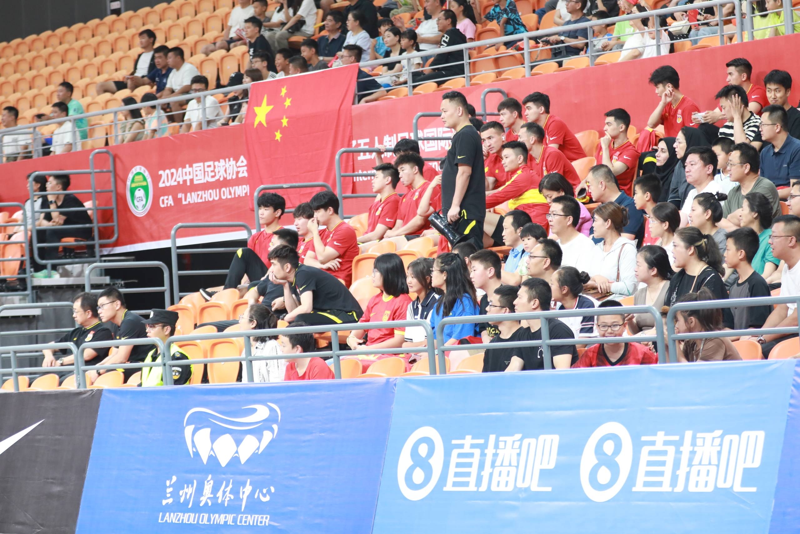 心系女足!五人制中国男足到现场给女足姑娘加油↓