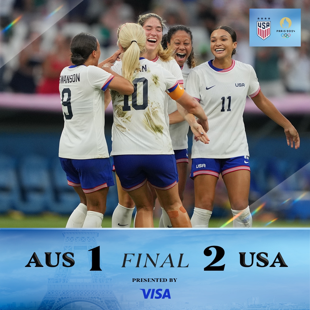 美国女足2-1澳大利亚女足,美国全胜出线将对阵日本