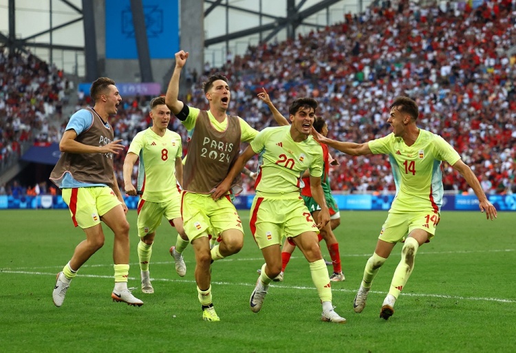 奥运男足-西班牙2-1摩洛哥进决赛 费尔明5场4球+传射胡安卢绝杀