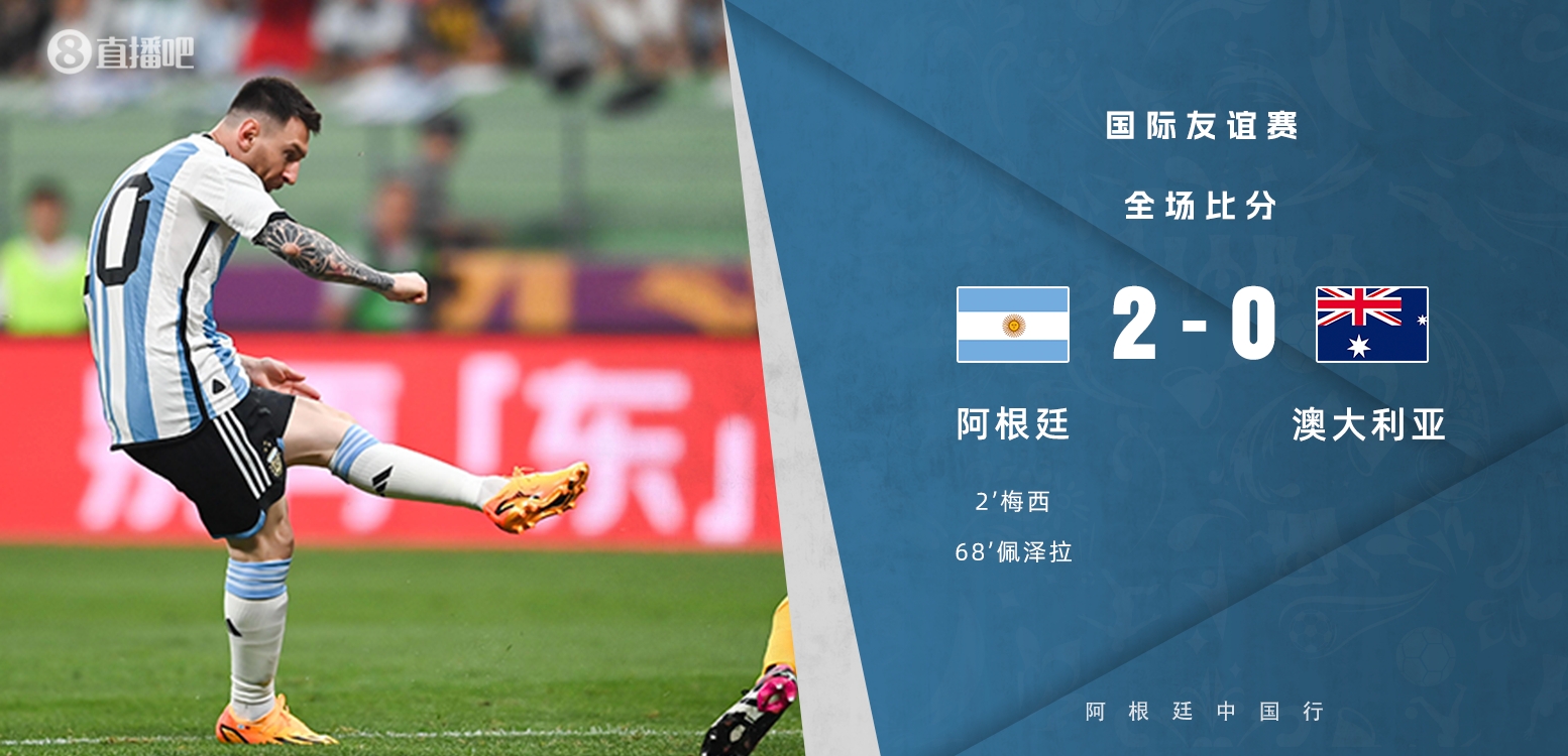 6月15日讯 北京时间6月15日20点,阿根廷中国行对阵澳大利亚在北京新工体进行。上半场开球仅81秒,梅西远射破门。大马丁贡献神扑。易边再战,德保罗助攻佩泽拉得分。梅西上演天秀连过三人,球迷冲进场导致比赛一度中断。最终阿根廷2-0击败澳大利亚。全场共51385人观战。