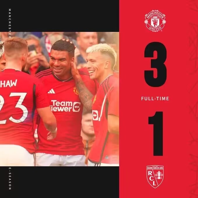 8月5日讯 北京时间今晚19:45分,足球友谊赛,曼联将对阵朗斯。上半场芒特错失空门良机,达洛特送礼索托卡中场吊射破门。易边再战,曼联9分钟内连进三球,安东尼、拉什福德传射,卡塞米罗头球建功。最终曼联3-1逆转朗斯。