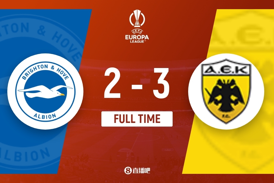 9月22日讯 03:00,欧联杯小组赛B组第1轮,布莱顿主场对阵雅典AEK。上半场,西迪贝精彩头槌破门,若昂-佩德罗造点+点射扳平,打进布莱顿队史欧战首球,加西诺维奇破门;下半场,若昂-佩德罗再次造点,点射双响再次扳平,尾声阶段庞塞破门帮助雅典AEK第三次领先,下半场补时13分钟,最终布莱顿2-3不敌雅典AEK,海鸥欧战首秀憾负。