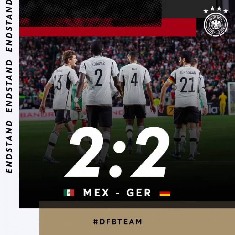 第50分钟,维尔茨头球被扑,菲尔克鲁格补射得手,德国2-2墨西哥。↓