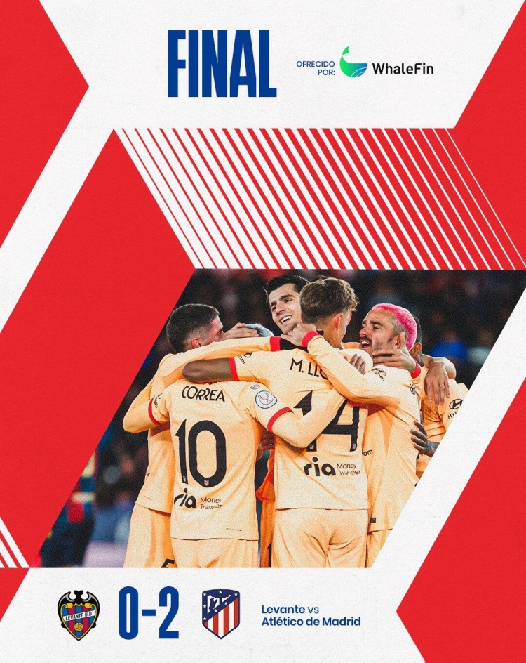 全场比赛结束,马竞2-0莱万特。