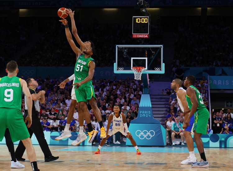 7月28日讯 奥运男篮小组赛B组,东道主法国男篮对阵巴西男篮。