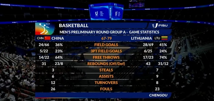 🏀大运会小组赛-邹阳15+8 中国男篮不敌立陶宛无缘8强