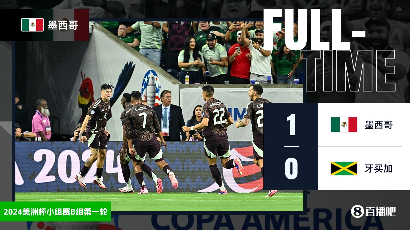 伤停补时3分钟。全场比赛结束,墨西哥1-0牙买加。