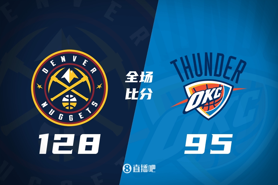 比赛开始,掘金反客为主率先发力,约基奇攻防两端立功带队很快取得两位数优势,亚历山大手感冰凉单节8投0中,次节双方围绕10分分差展开拉锯战,雷霆不断冲击内线拿分迫近比分,掘金里突外投连续拿分强势回应,半场战罢掘金69-51领先18分。易边再战,雷霆仍无起色,掘金很快将优势扩大到20分,亚历山大依然状态不佳,掘金稳扎稳打将分差拉开到30分以上,最终,掘金128-95大胜雷霆,本赛季开局3连胜。