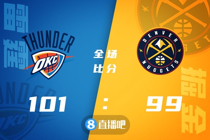 比赛开局,缺兵少将的掘金进攻端不够流畅,穆雷独木难支,雷霆打出一波小高潮后很快建立两位数的领先优势,次节掘金进攻状态回暖,多点开花,逐渐蚕食分差,半场结束雷霆52-47领先。易边再战,两队交替取分,陷入拉锯战,分差在五分上下浮动,比赛很快来到第四节,末节回来,掘金罚球线上连续罚丢,但是在节末还剩30秒时还是将比分追平,亚历山大关键中距离投进,雷霆101-99险胜掘金,终结对手九连胜。