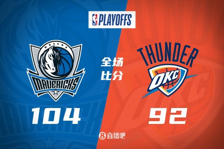 雷霆(2-3):东契奇31分10板11助,欧文12分2板4助,琼斯19分,华盛顿10分10板4助,加福德9分7板,莱夫利11分10板,格林5分2板3助,哈达威5分,哈迪2分3板2助