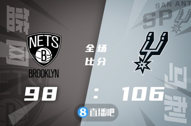 比赛开始,开场残阵篮网攻击力十分有限,马刺轮番冲击篮筐频频得手很快取得两位数领先,此后篮网展开反击,多点开花迅速迫近比分,双方展开拉锯战,半场战罢两队战成51平。易边再战,双方依旧势均力敌,马刺在相持中逐渐占据上风,凯尔登连续拿分帮助球队重获两位数优势,末节双方争夺激烈,篮网内外开花努力追赶,最后时刻双方连续失误,马刺将优势保持到了最后。最终,马刺106-98力克篮网,结束5连败的同时送给对手3连败。