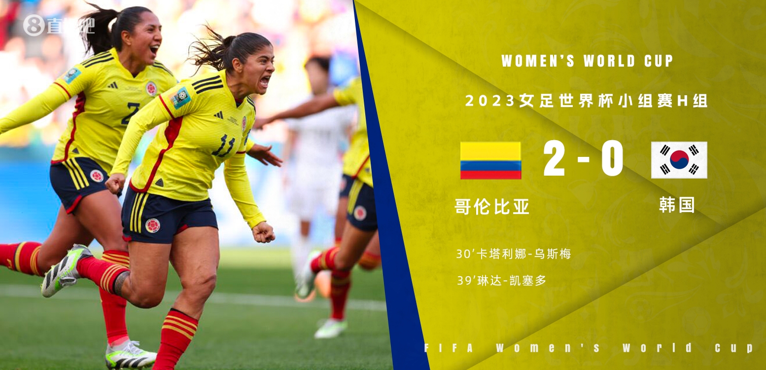 全场比赛结束,哥伦比亚2-0韩国。
