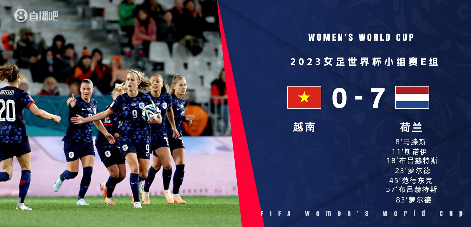 女足世界杯-布吕赫特斯双响+世界波 荷兰女足7-0越南女足头名出线