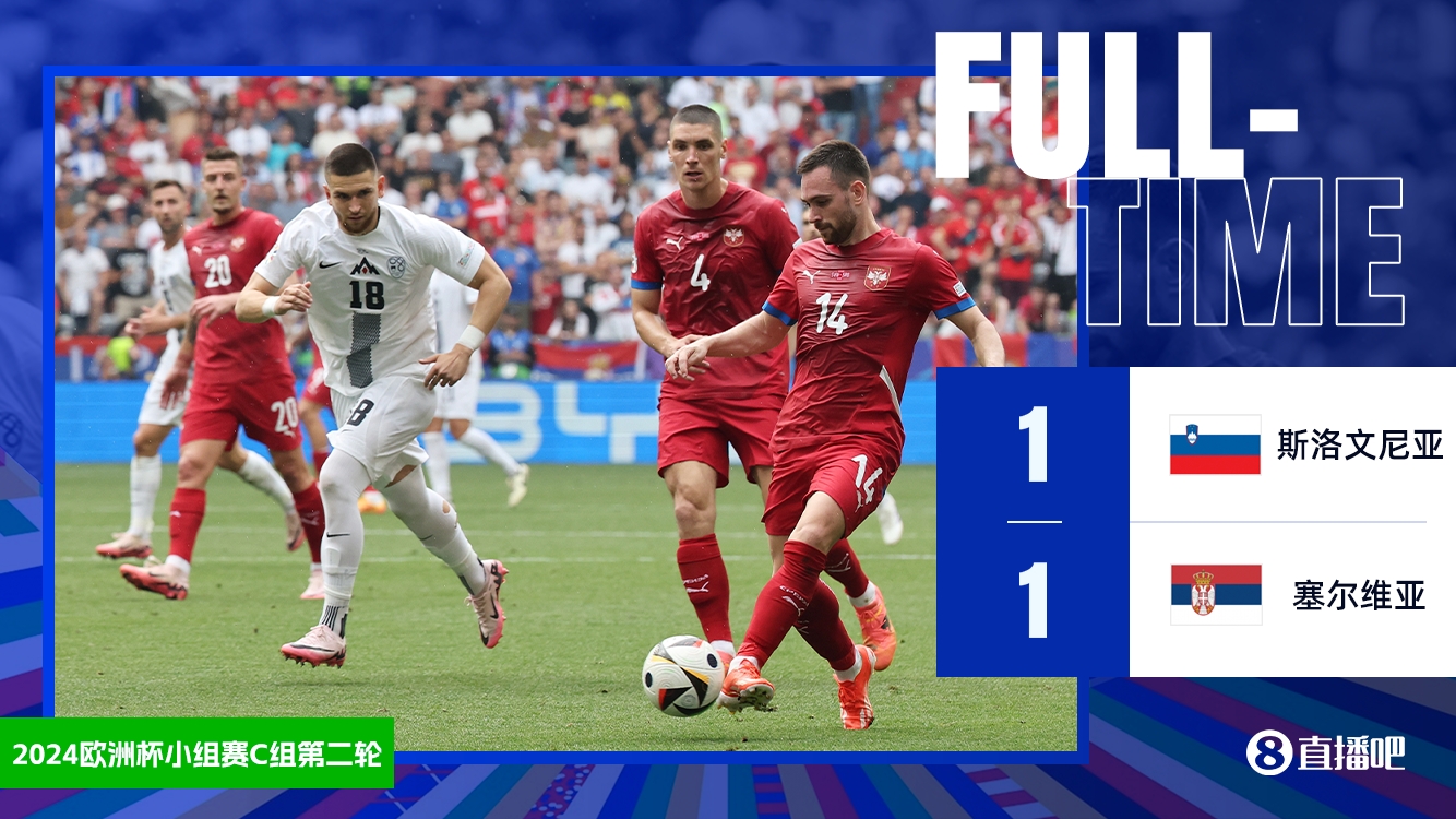 约维奇读秒绝平!第90+6分钟,伊利奇主罚角球开出,约维奇乱战中抢点头球攻门入网,斯洛文尼亚1-1塞尔维亚!↓