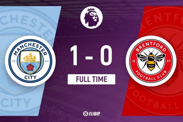 全场比赛结束,最终曼城1-0布伦特福德。