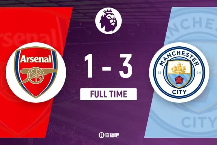 下半场伤停补时5分钟,全场比赛结束,最终曼城3-1阿森纳。