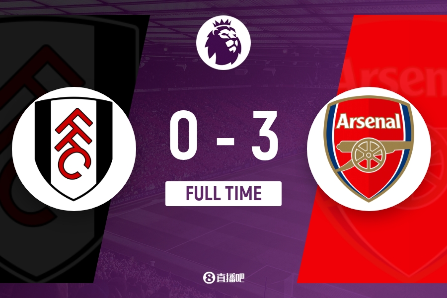 全场比赛结束,阿森纳3-0富勒姆。