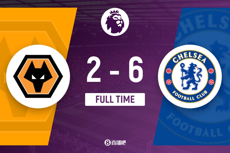 8月25日讯 北京时间8月25日21时,英超第2轮,切尔西客场挑战狼队。上半场,杰克逊开场100秒头球破门打入切尔西本赛季英超首球,库尼亚破门扳平比分,狼队之后还击中一次横梁,尾声阶段,杰克逊助攻帕尔默破门将比分超出,补时最后时刻,拉尔森抢点破门再次将比分扳平!半场战罢,狼队暂2-2切尔西;下半场,马杜埃凯连入三球完成帽子戏法,帕尔默完成助攻帽子戏法,菲利克斯替补登场并打入一球!全场比赛结束,狼队2-6切尔西!