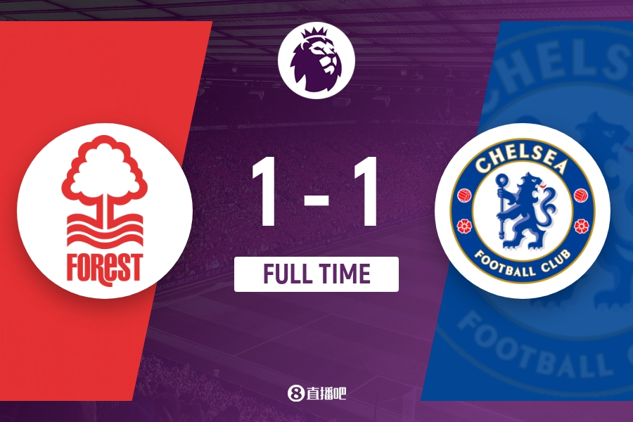 全场比赛结束,切尔西1-1战平诺丁汉森林。