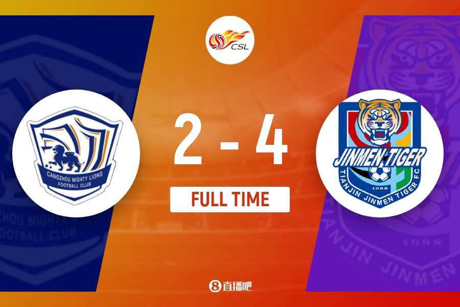 全场比赛结束,天津津门虎4-2沧州雄狮。