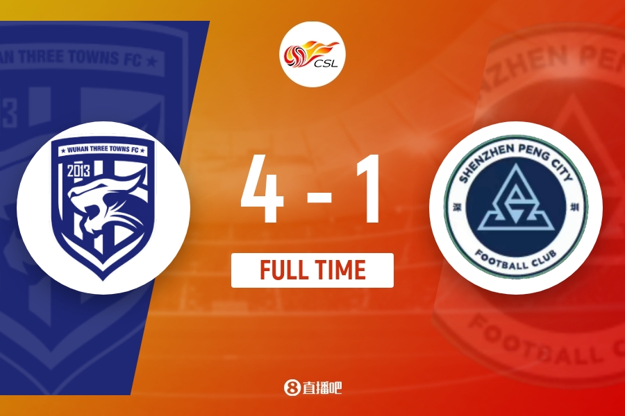 全场比赛结束,武汉三镇4-1深圳新鹏城。
