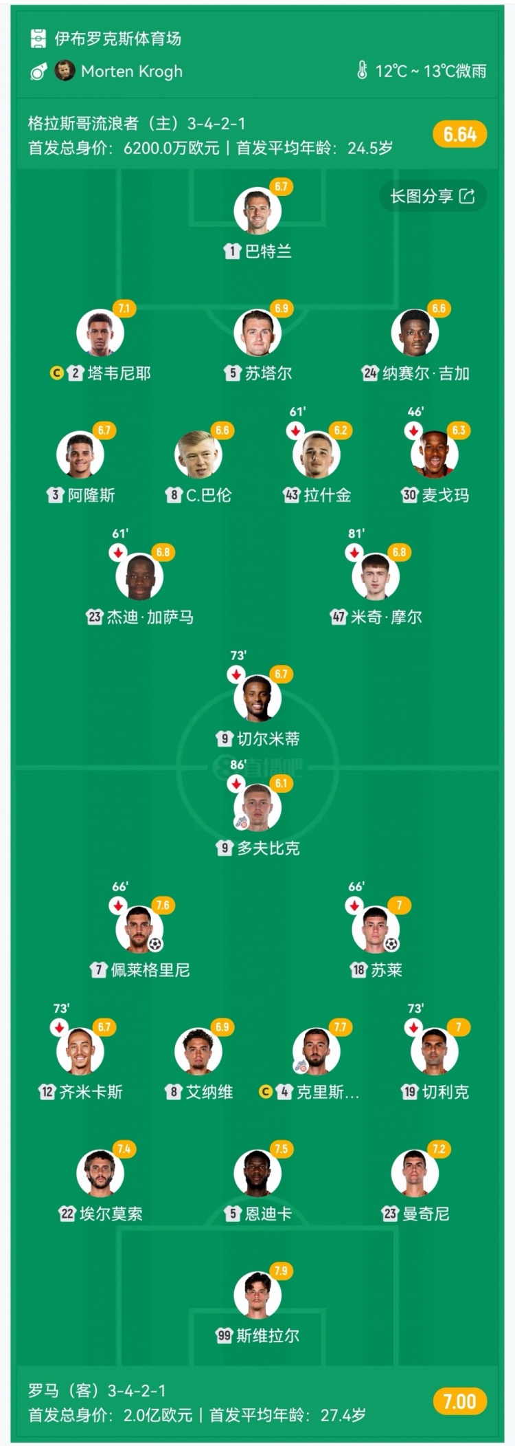 【双方首发及换人信息】