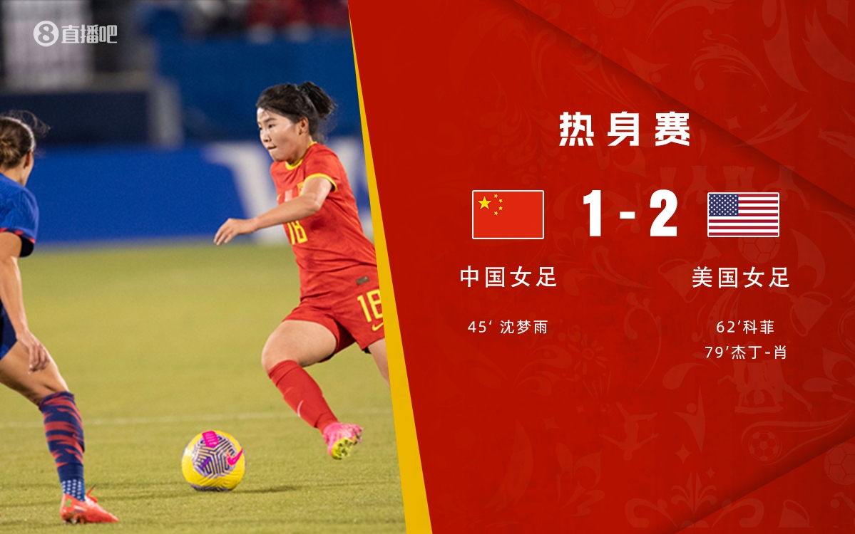 12月6日讯 北京时间12月6日上午9:00,中国女足和美国女足进行一场友谊赛。上半场,沈梦雨半场结束前破门。下半场,山姆-科菲兜射扳平,杰丁-肖低射反超。全场结束,中国女足1-2美国女足,连续2场不敌对手。