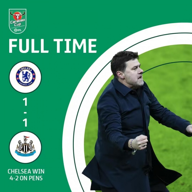 下半场补时4分钟,切尔西1-1纽卡,点球大战,切尔西4-2纽卡。